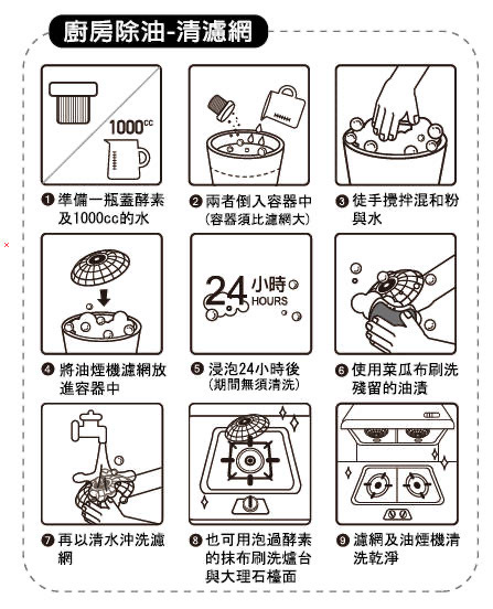 4.排油煙機濾網建議可浸泡一日後可完全清潔乾淨