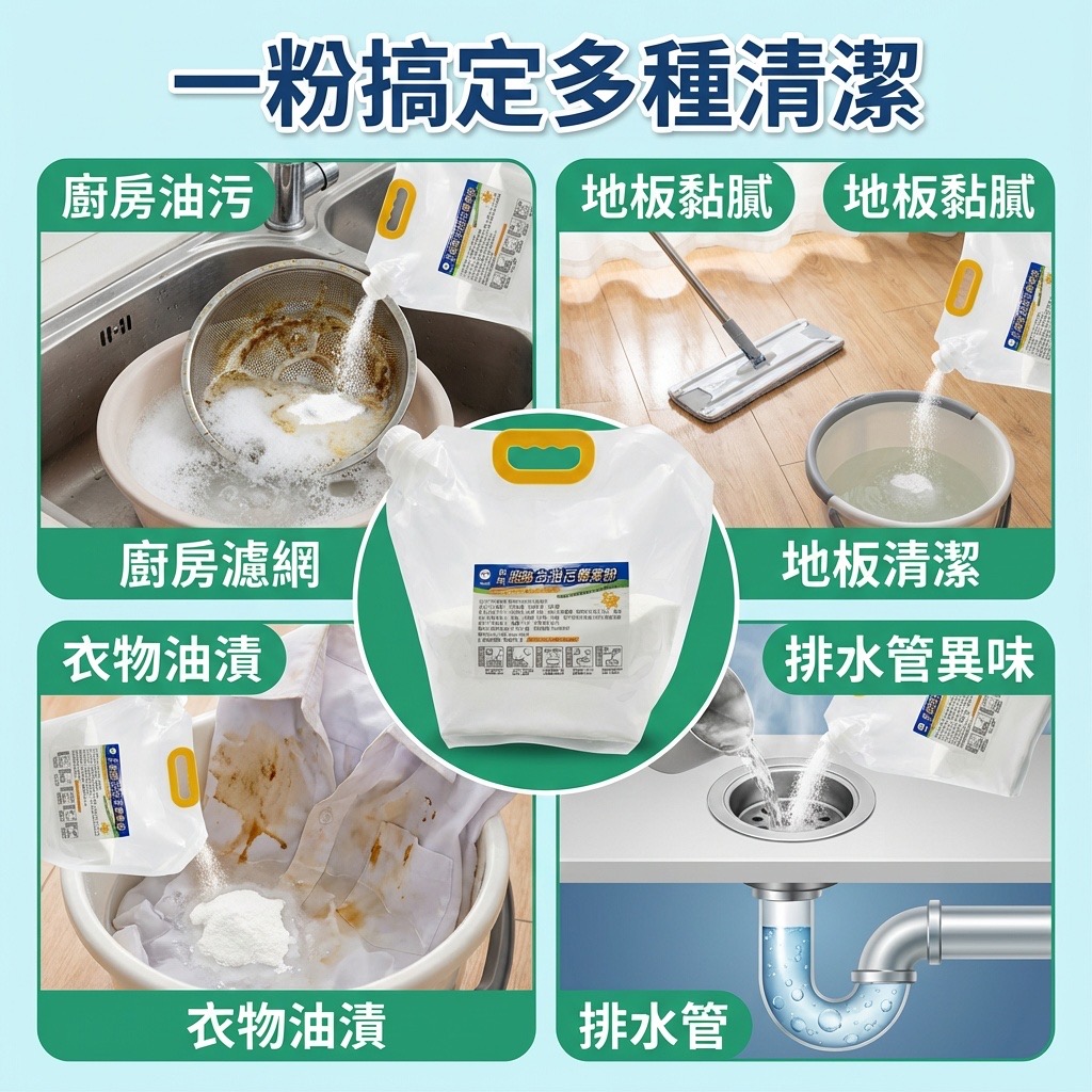 適合家庭、餐廳、工作場所日常清潔,一粉多用更方便。